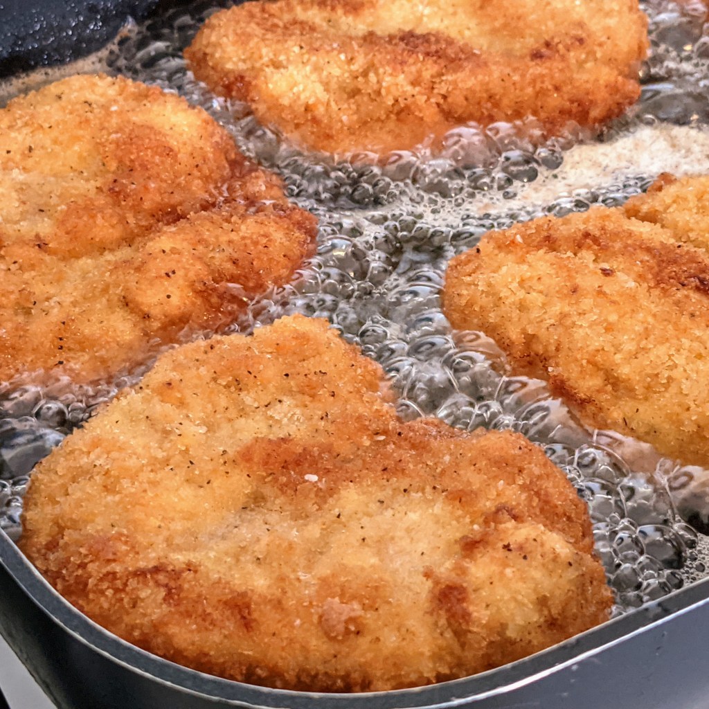 Fry the chicken, flipping in between several times for even browning, cook the chicken until golden brown for around 8-12 minutes and when the internal temperature reaches 165 degrees. Cook time will vary depending on the thickness of the chicken pieces.