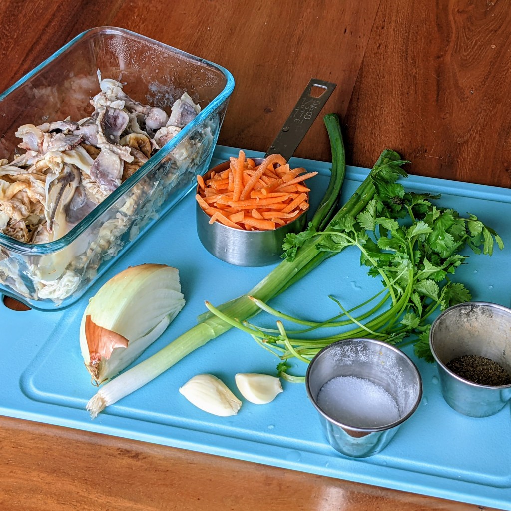 - 1 Carcass (bones and skins) from store bought rotisserie chicken
