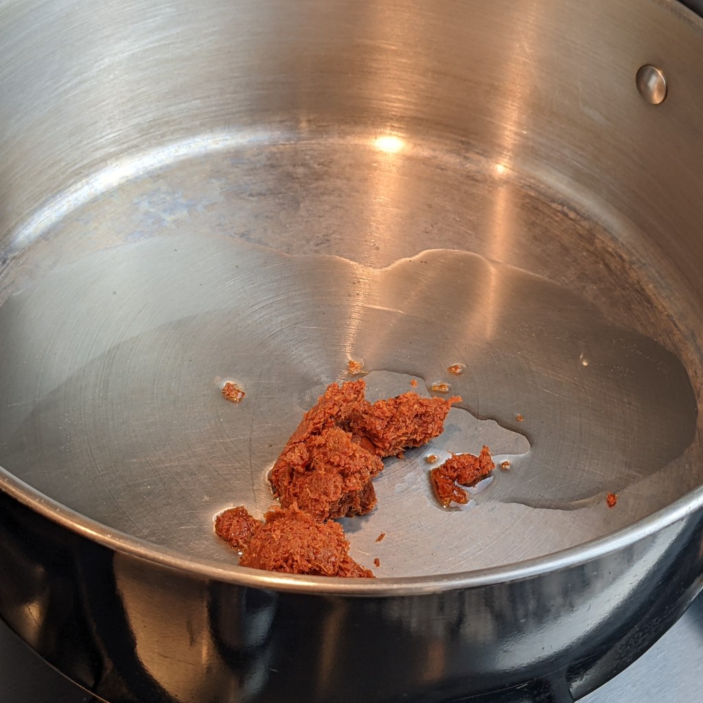 This soup uses red Thai curry paste along with fresh red chili for flavor. Note that I leave the chili whole (instead of chopping it up) so that the soup doesn’t get overly spicy.