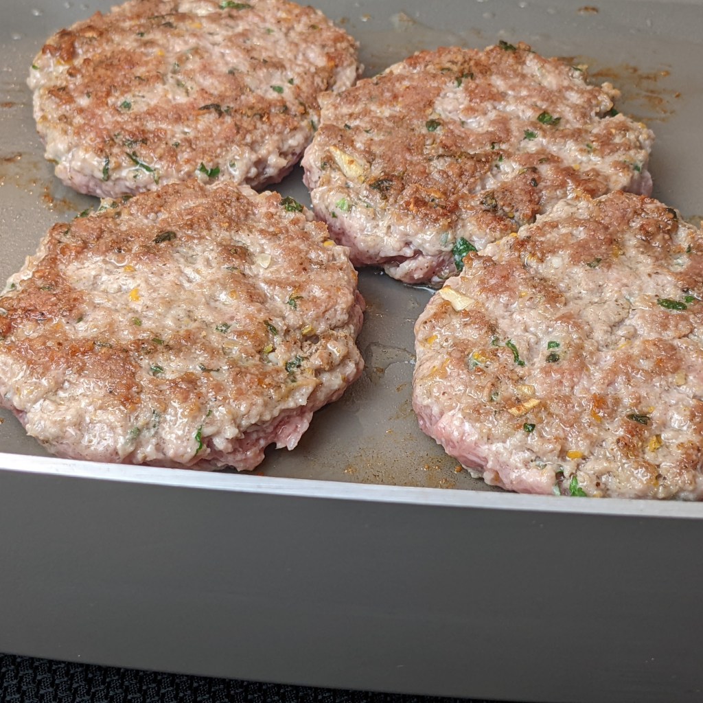 Place all pork patty ingredients in a mixing bowl. Mix gently everything together, then form it into 4 equal sized patty a little bigger than the buns you will be using. You want to do this since the burger shrinks while it cooks.