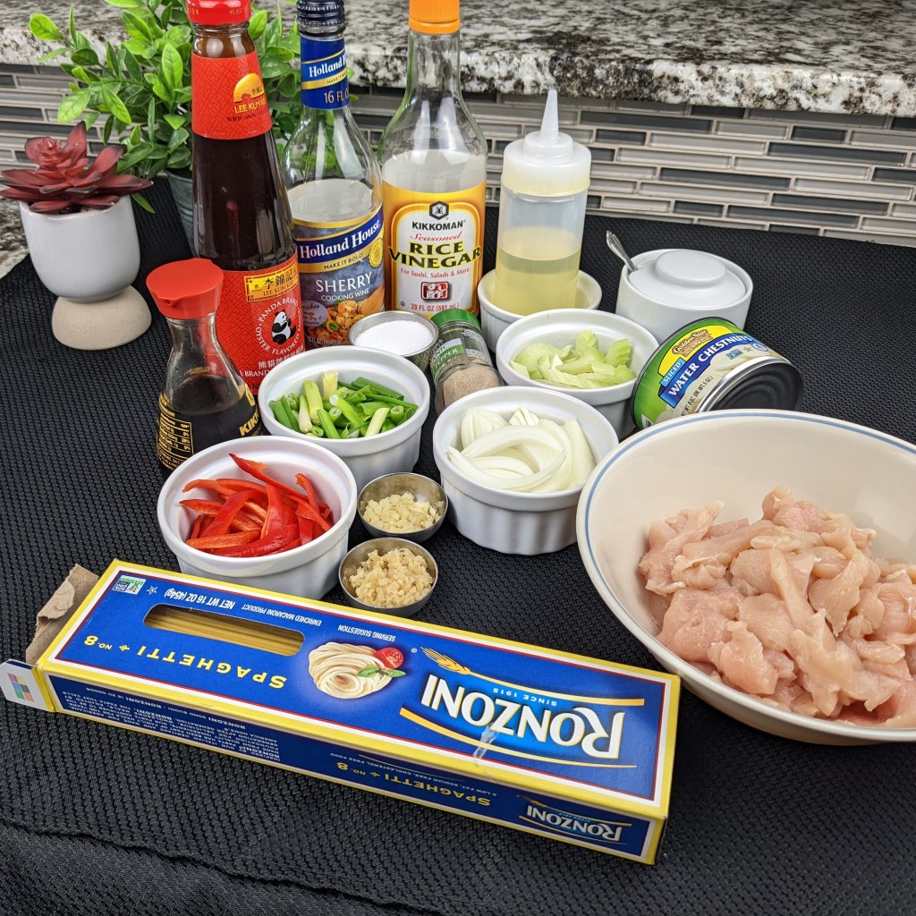 Chow mein noodles are made with wheat and egg, similar to Italian pasta like spaghetti. Today I will keep it really simple (although still delicious!) and use spaghetti since it is widely available. I am using chicken breast today but you may try tofu or other types of protein.