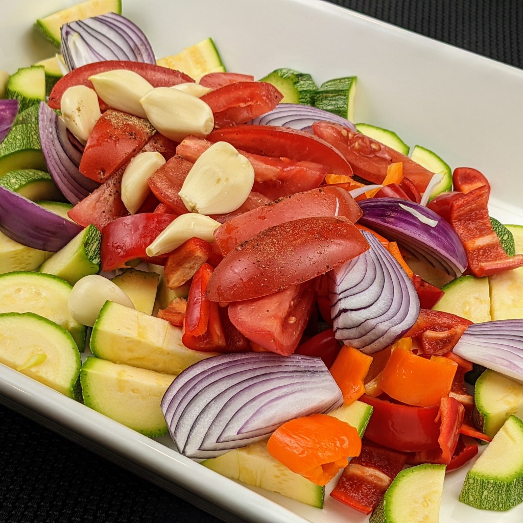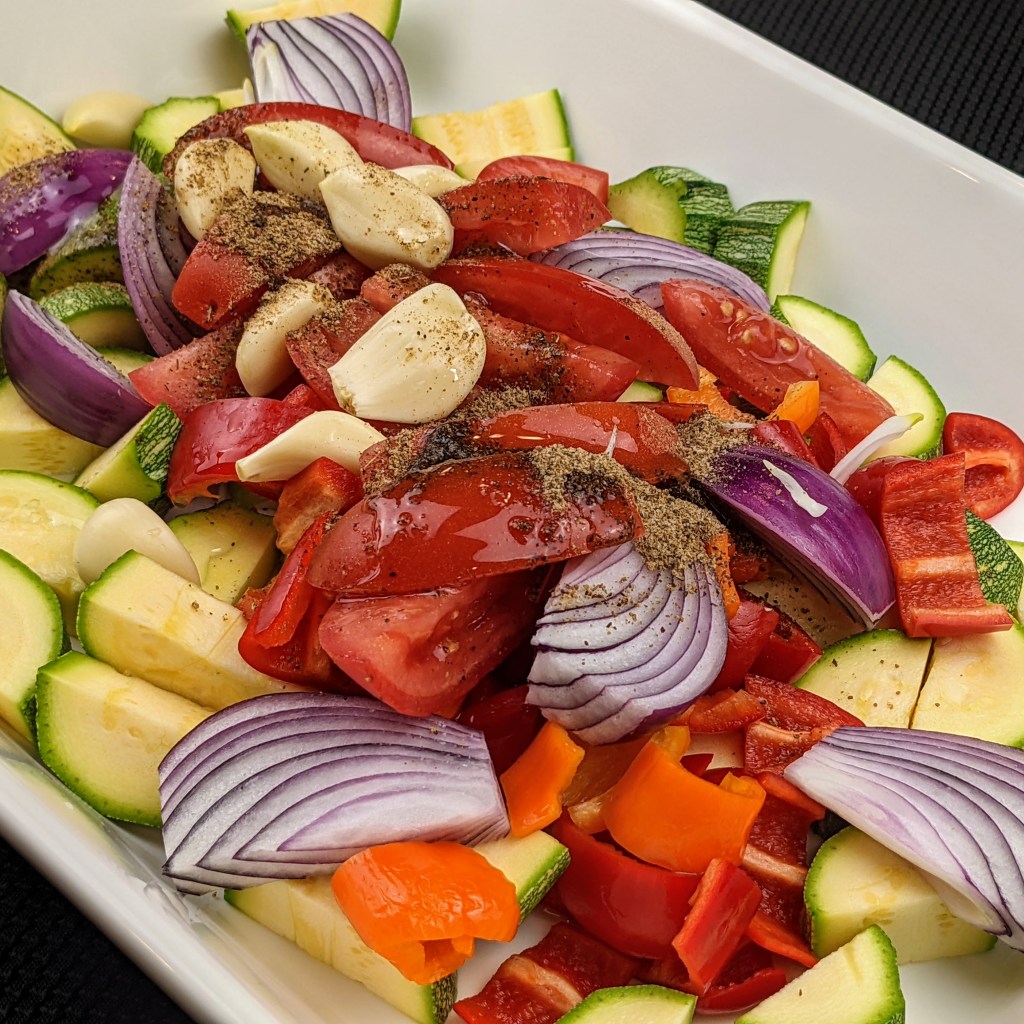 Some of the best mixes come from Penzeys Spices and today I feature their Ozark Style Seasoning. It is a Southern U.S. style blend of black peppers, numerous herbs, and salt. I have been using it to make the most delicious roasted vegetables one can imagine. The balance of spices is incredible and I use it below in this recipe.