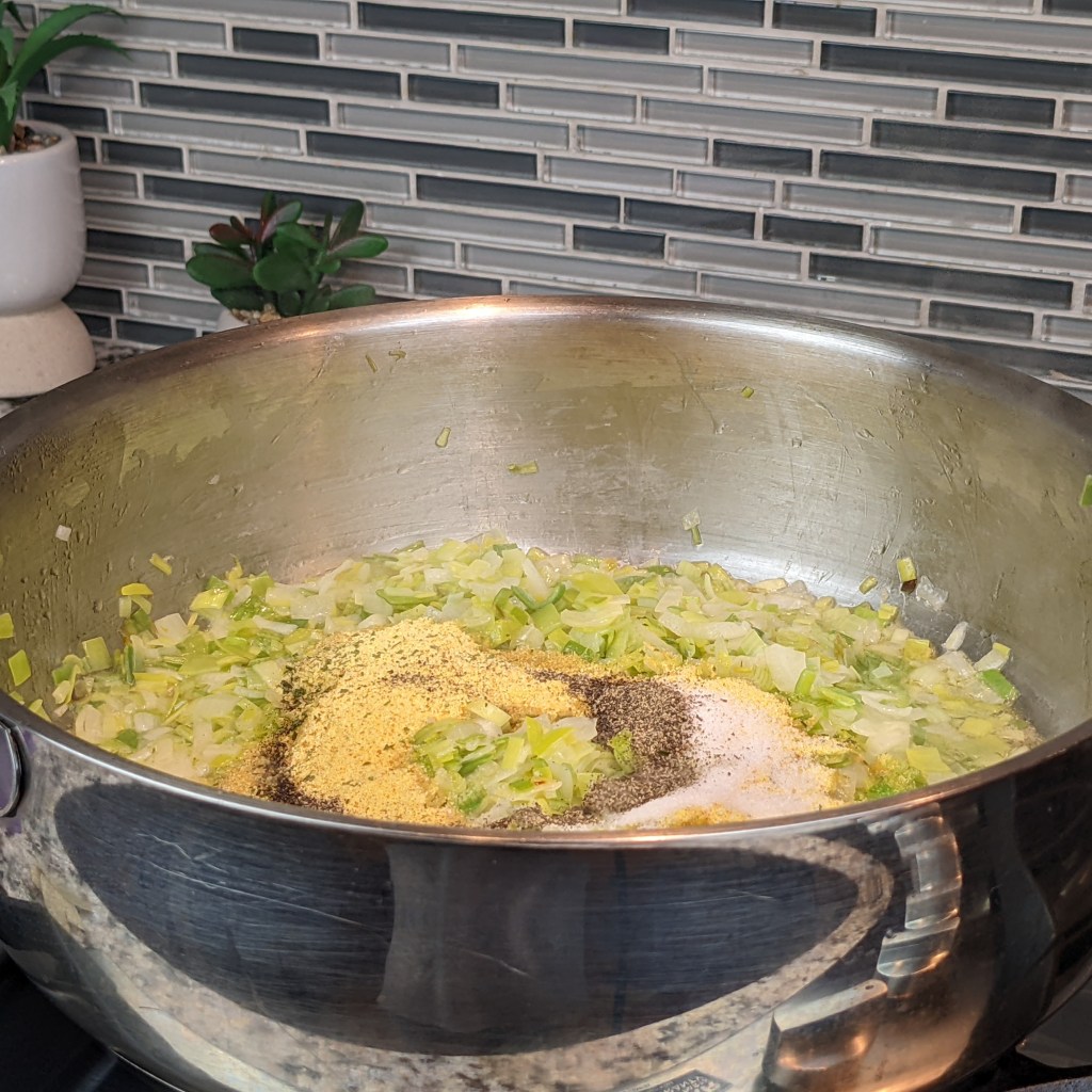 - 1 3/4 cup leeks, small dice