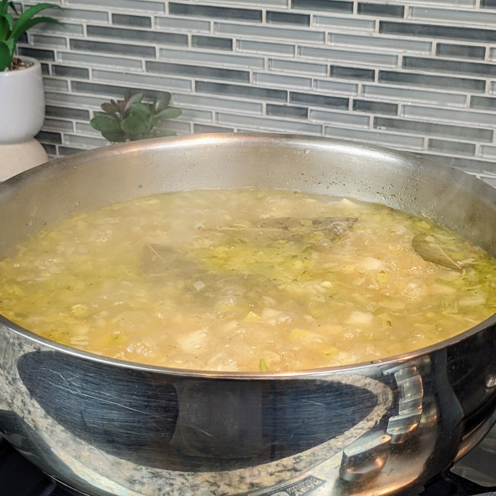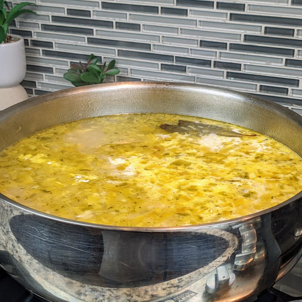 I wanted to know more and learned that it’s a pureed soup made with potatoes, leeks, and cream. In Europe it might be eaten cold but my co-worker preferred it heated up.