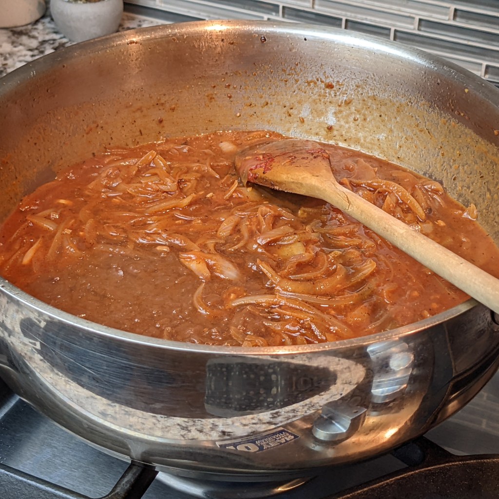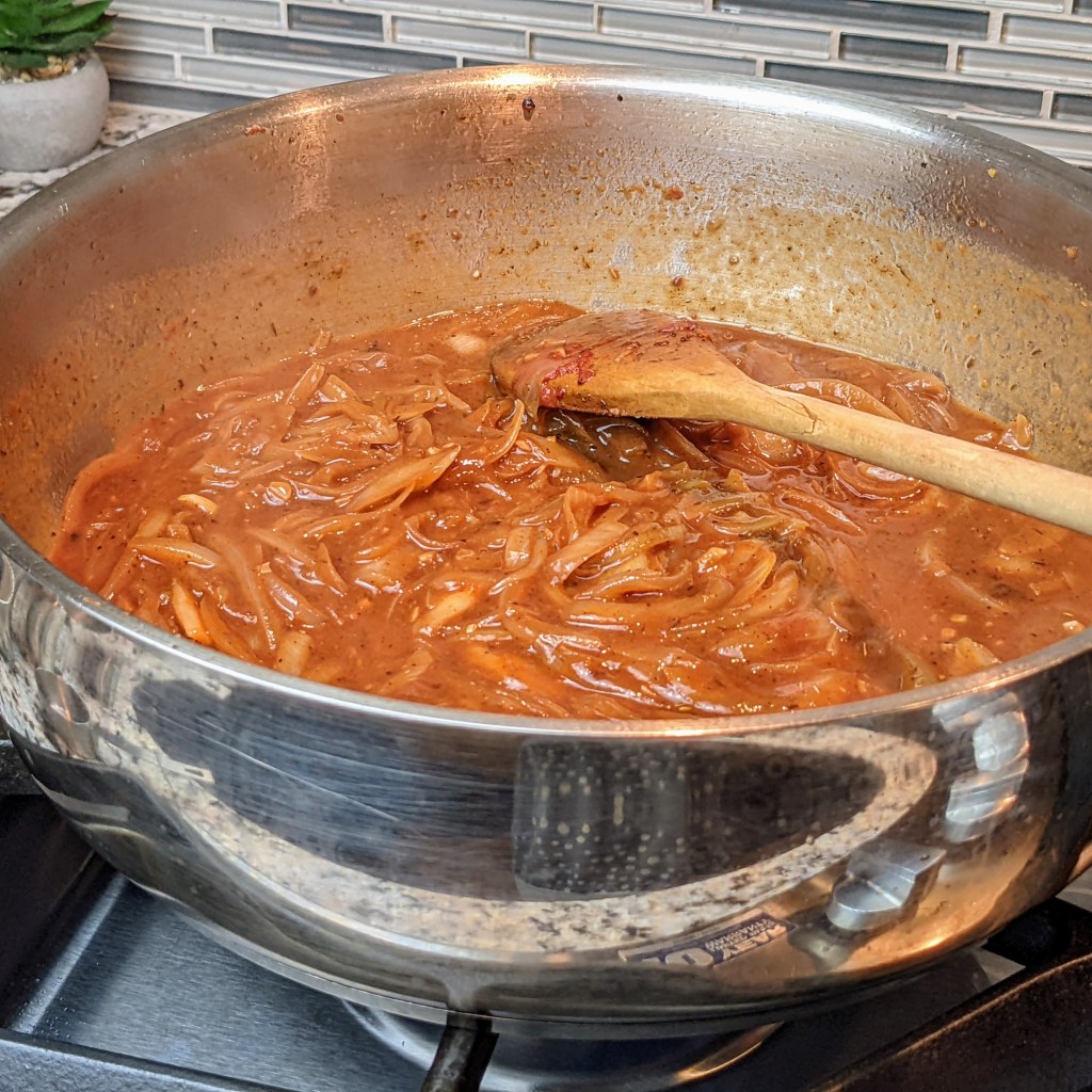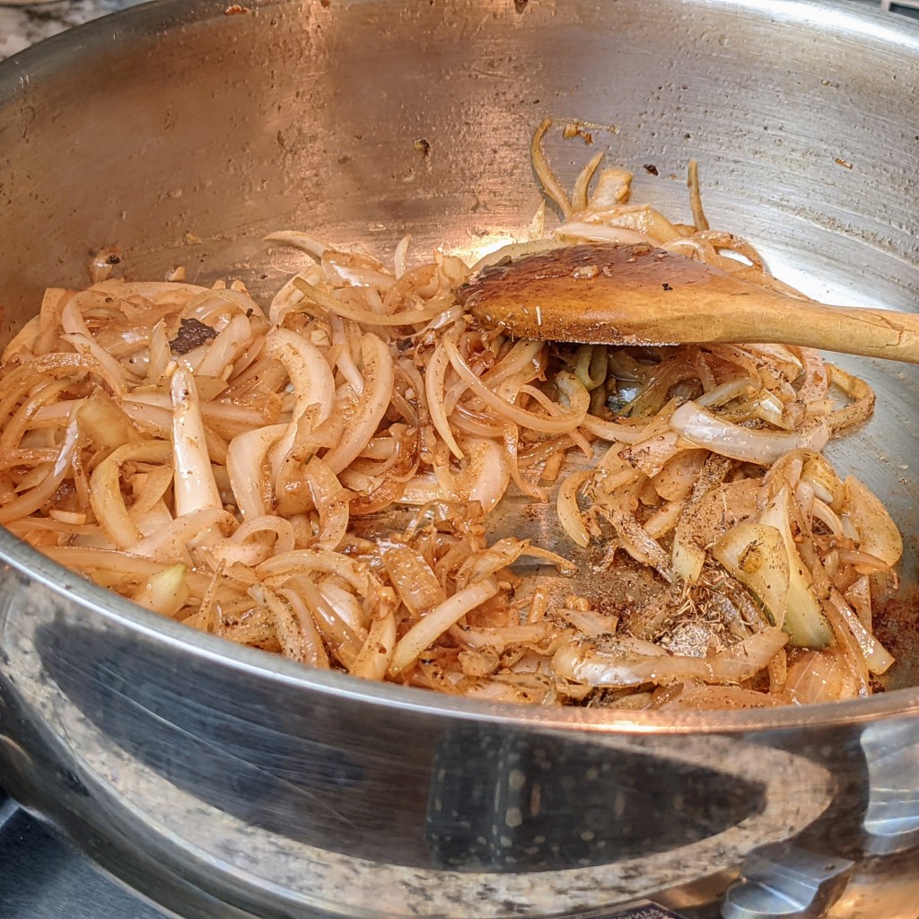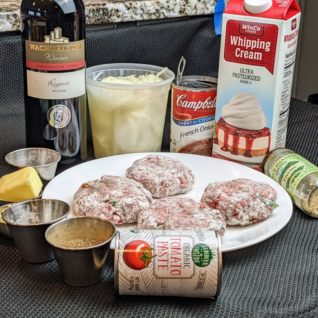 A friend of mine recently gave me a mystery food basket that include a wide variety of items. She wanted to see how I could use the items in the basket. I was able to use most of the items but somehow had a single can of French onion soup left over at the end. Eventually I decided to try this out in a Salisbury steak sauce.