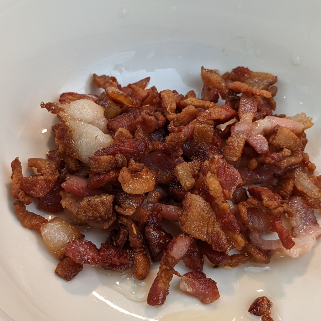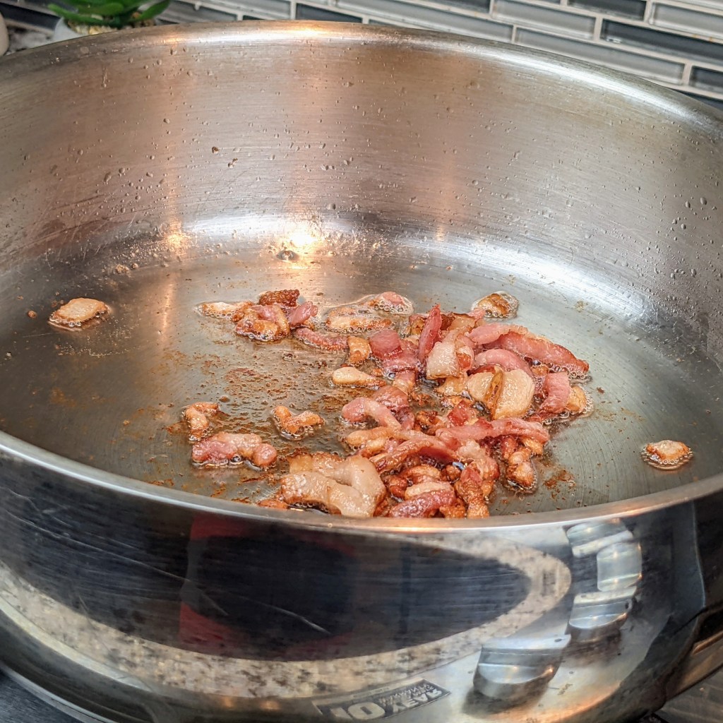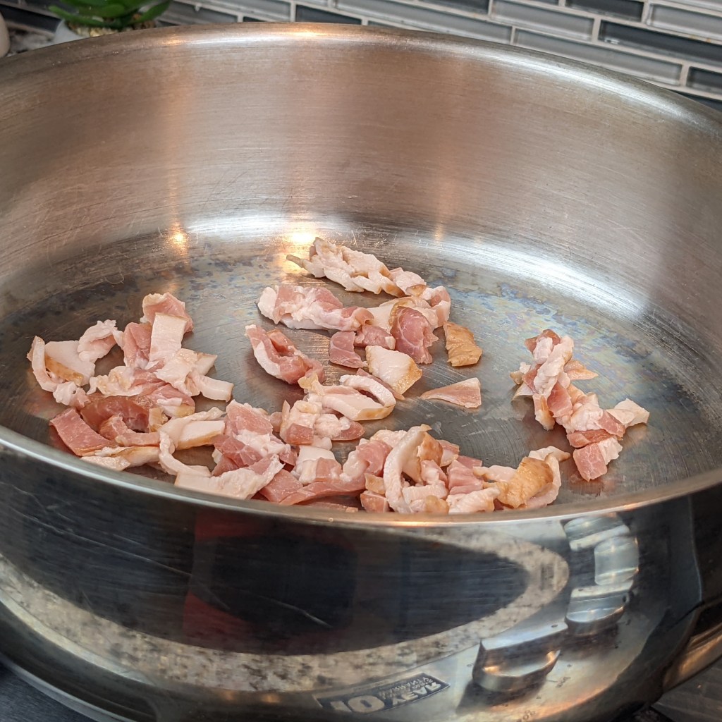 Heat a large soup pot over medium heat. Add bacon and cook bacon until crisp. Remove cooked bacon with a slotted spoon and drain on paper towels.