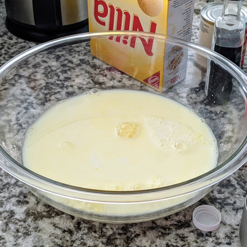 Beat milk, vanilla, and pudding in a large mixing bowl for 2-3 minutes or until smooth. Add condensed milk and mix well.