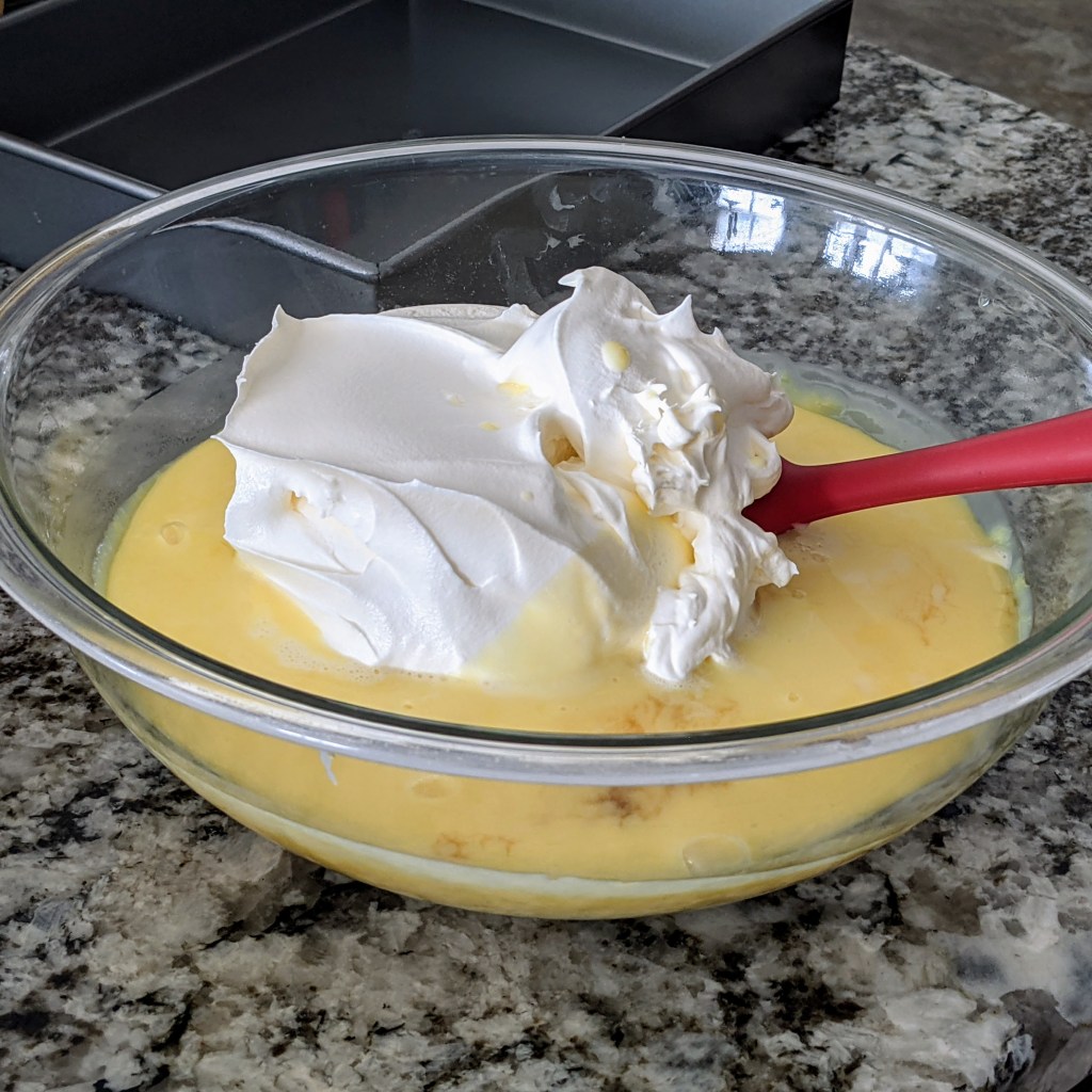 Next add whipped cream. Use a rubber spatula to fold everything gently.