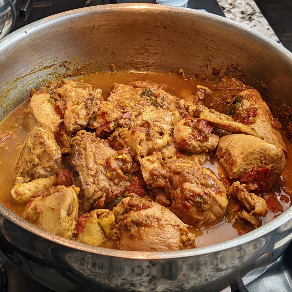 - 2 1/2 lbs. cut up chicken pieces (skin removed but bone-in)