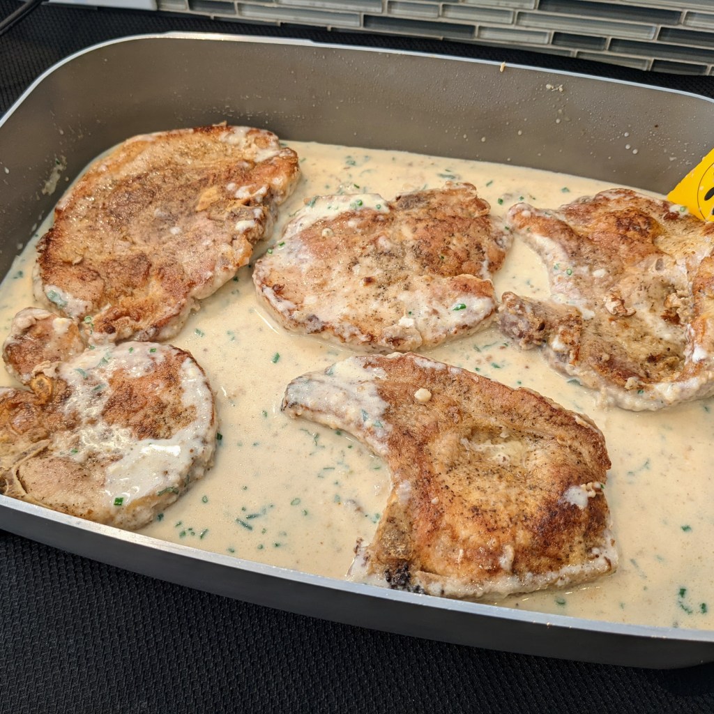 Today I will be making a pan-fried pork chop recipe based on the gravy I tasted there. It’s sophisticated yet very comforting at the same time — much better-than-average comfort food.