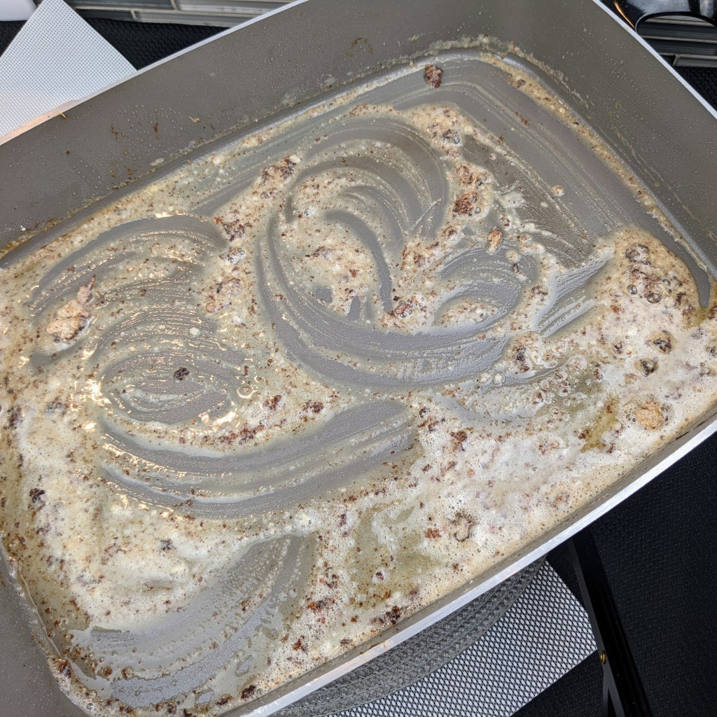 I then make a simple sage and butter gravy. This recipe goes very well over creamy mashed potatoes with a side of green beans or mixed vegetables.