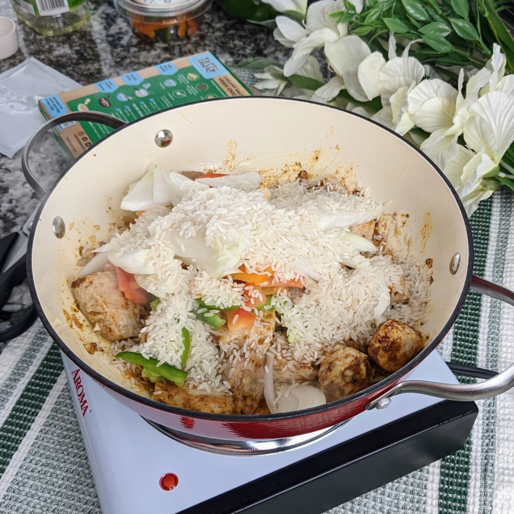 I made two batches. For the first one I followed the recipe exactly. It was good but not as good as I knew it could be. On the second batch I tweaked it and made it into a one-pot meal instead of cooking the rice separately. I also added onions, garlic, and salt.
