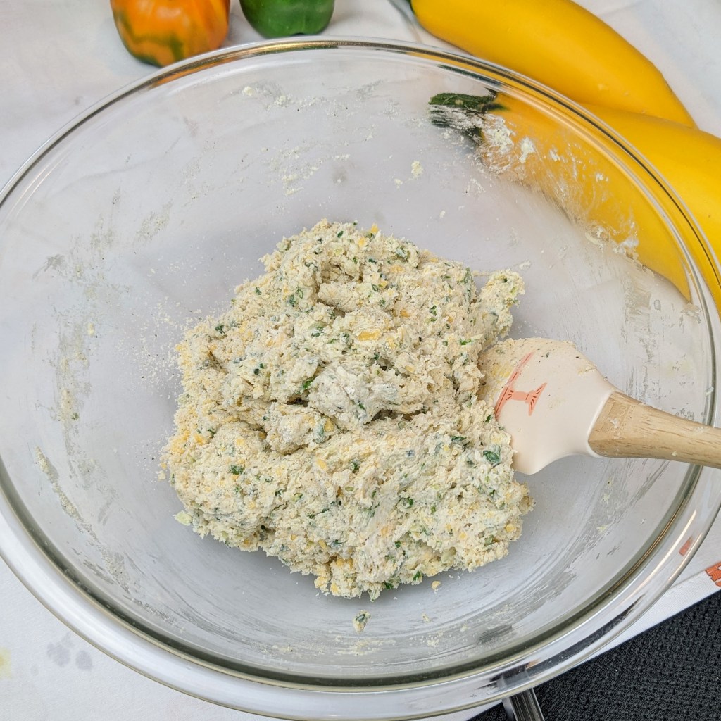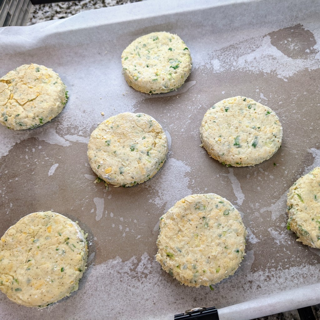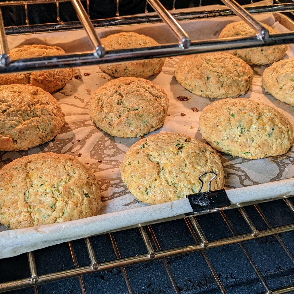 I finally got a few big ones to harvest that were great to use in the biscuits. Once you grate the zucchini, make sure to squeeze out the excess liquid. Too much moisture could make the biscuits soggy.
