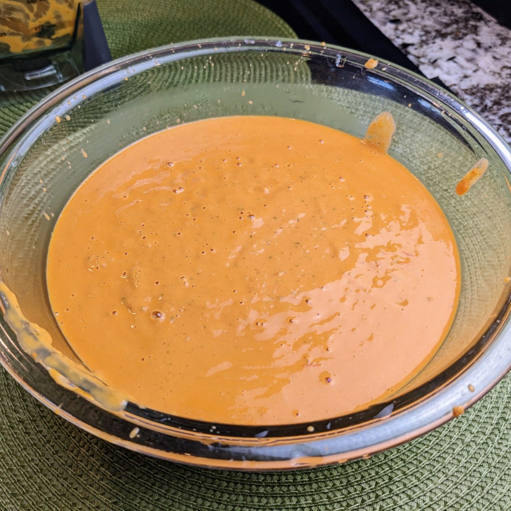 While tomatoes are roasting, place cashews, and soaked water in a blender cup, then puree until completely smooth. Set aside until needed.