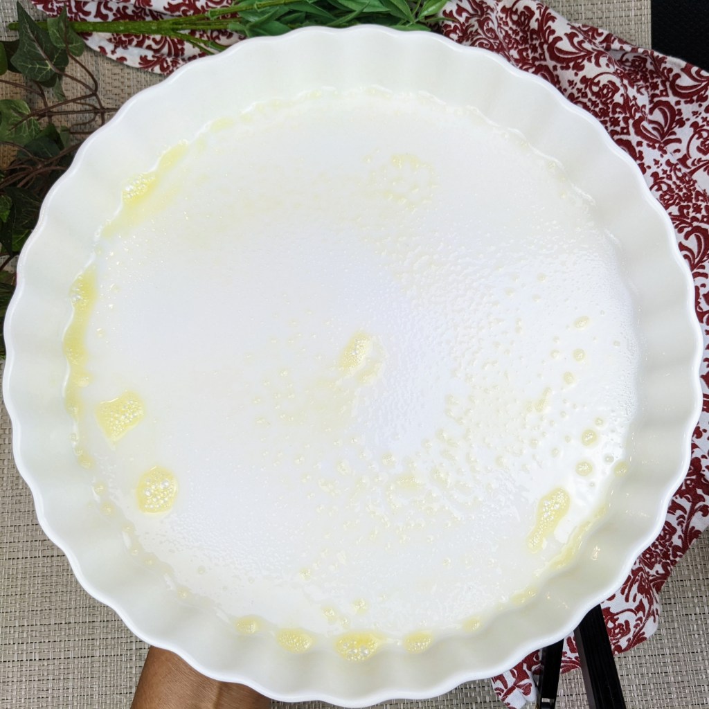 Preheat heat your oven to 375 degrees Fahrenheit. Spray 12×12 round baking pan with non-stick cooking spray then set aside.