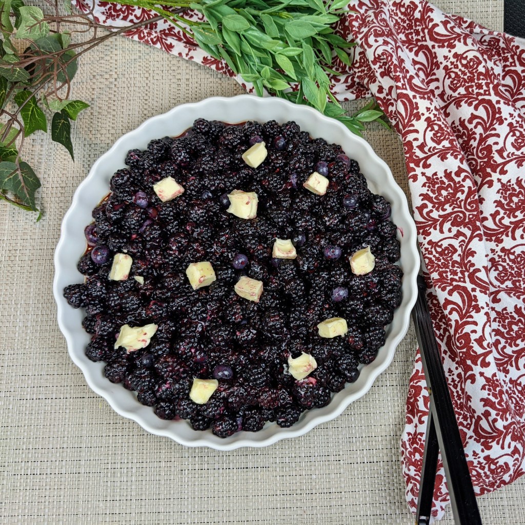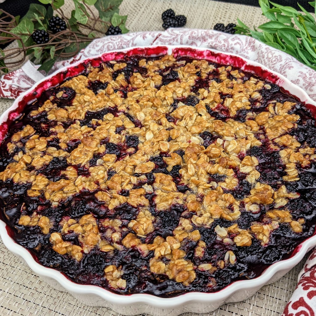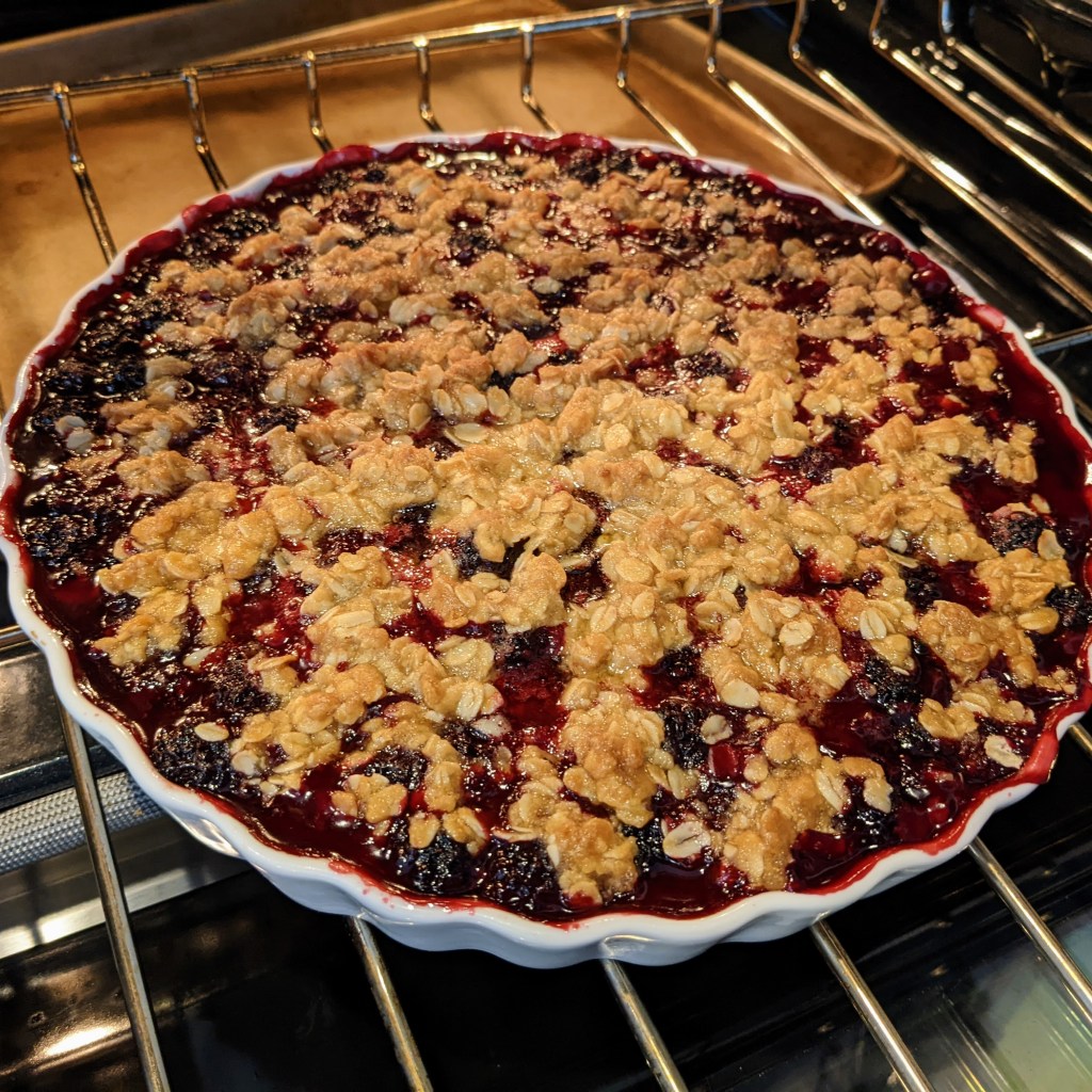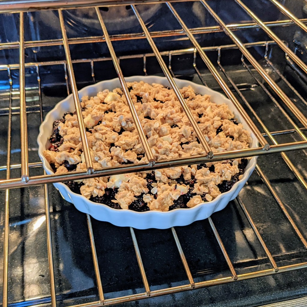 Today I am using Bob’s all purpose flour and rolled oats to make a blackberry crisp. This differs from a crumble in that this crisp uses a combination of flour and oats for the topping whereas a crumble uses only flour.
