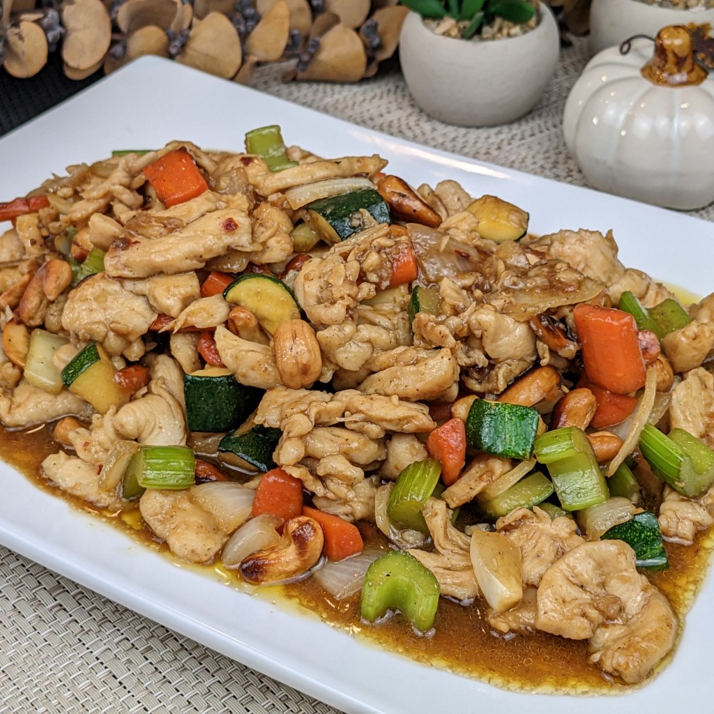 Today I will be sharing my take on restaurant-style cashew chicken. Cashew chicken is a Chinese-American dish that includes chicken, cashews, and a light brown garlic sauce, or thick sauce made with soy sauce and oyster sauce. I am making mine with a combination of both sauces. The chicken can be deep fried or stir fried. I like to marinate the chicken first with a few ingredients and stir fry in a little amount of oil to keep it healthy. You can deep fry the chicken if you like.