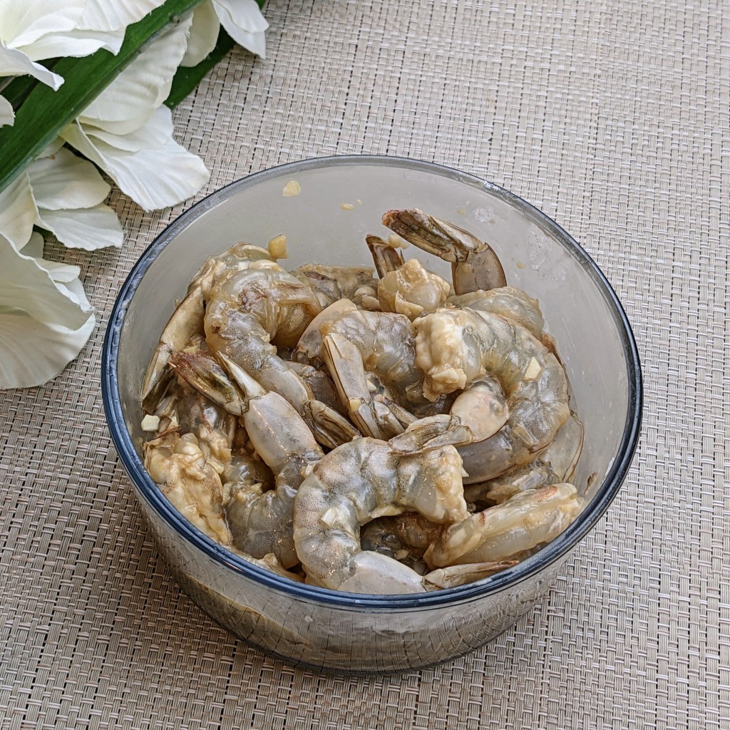 In a mixing bowl add all the shrimp ingredients. Mix well, then set aside to marinade for 30 minutes.