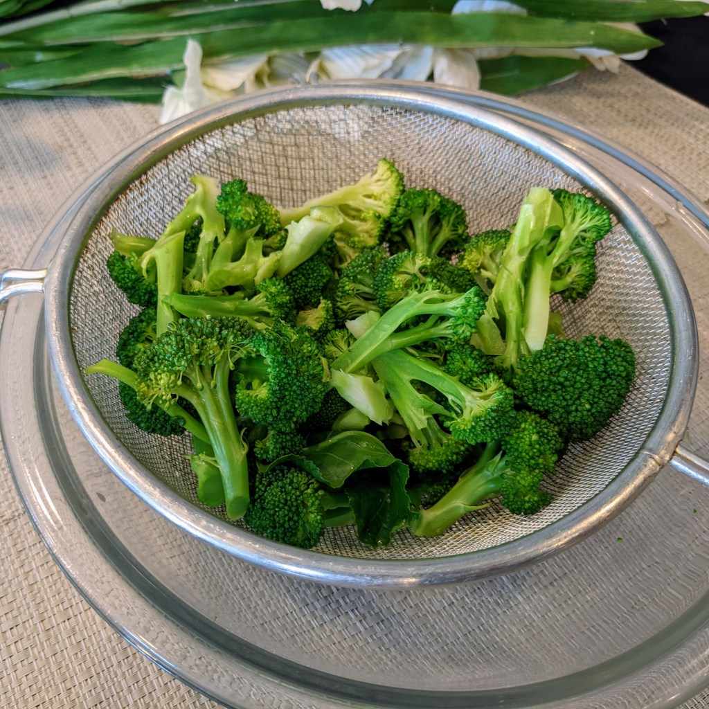 I like to blanch my broccoli using a microwave as this speeds up the process. You don’t need the ice bath to cool the broccoli. If you haven’t tried this process, try it as you won’t be disappointed.