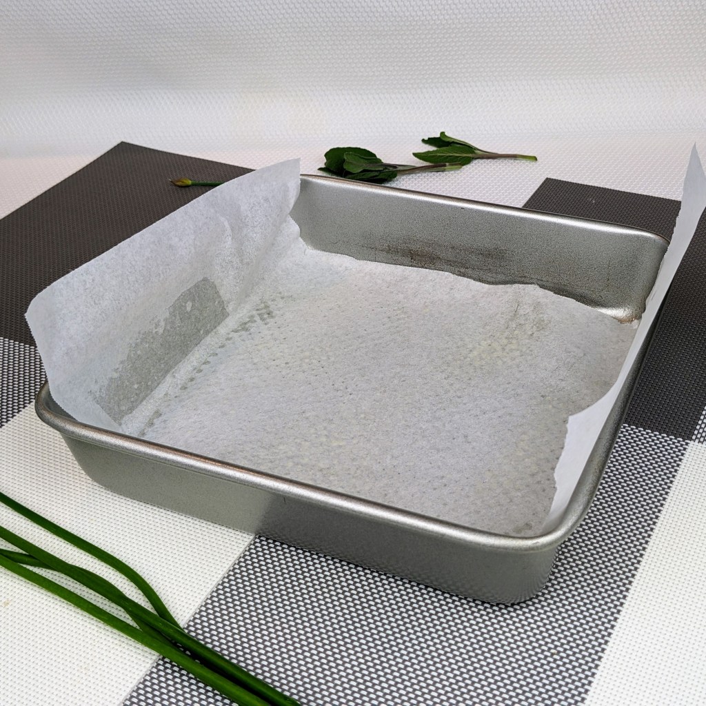 Preheat oven to 375 degrees. Line and spray 8×8 baking pan with parchment paper.