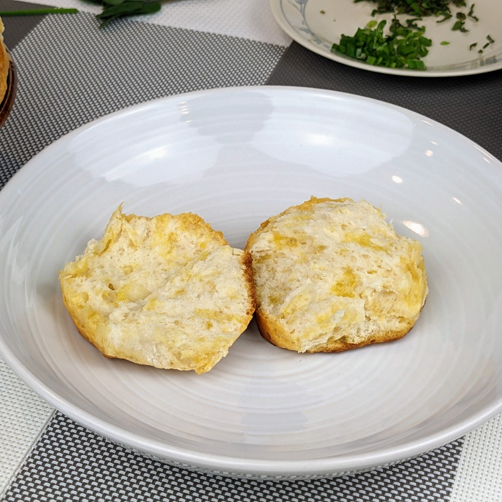 When you are ready to serve, split biscuits in half. Place 2 halves on a plate. Top with desired amount of gravy. Sprinkle some chives over the gravy and enjoy!