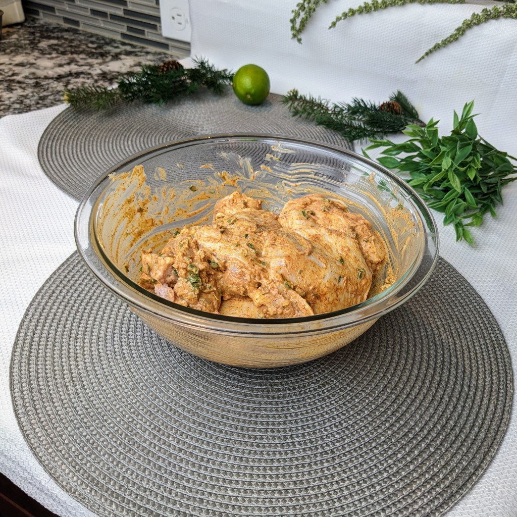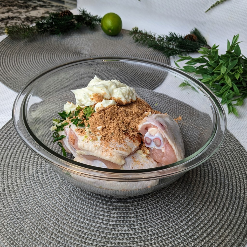 Place all chicken ingredients in a large mixing bowl. Use a clean hand and mix everything well. Set them aside to marinade for 30 minutes.