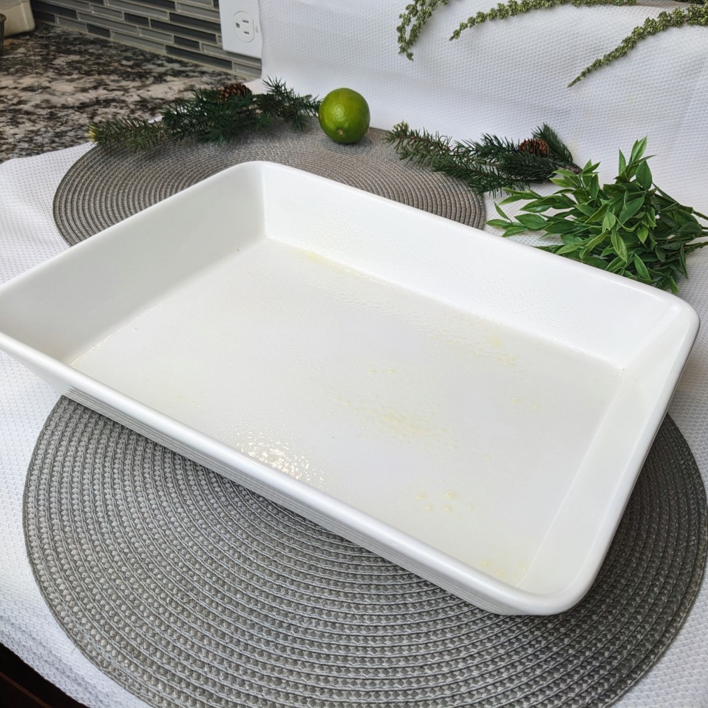 Preheat oven to 350 degrees. Then spray large baking dish with non-stick cooking spray and set aside.