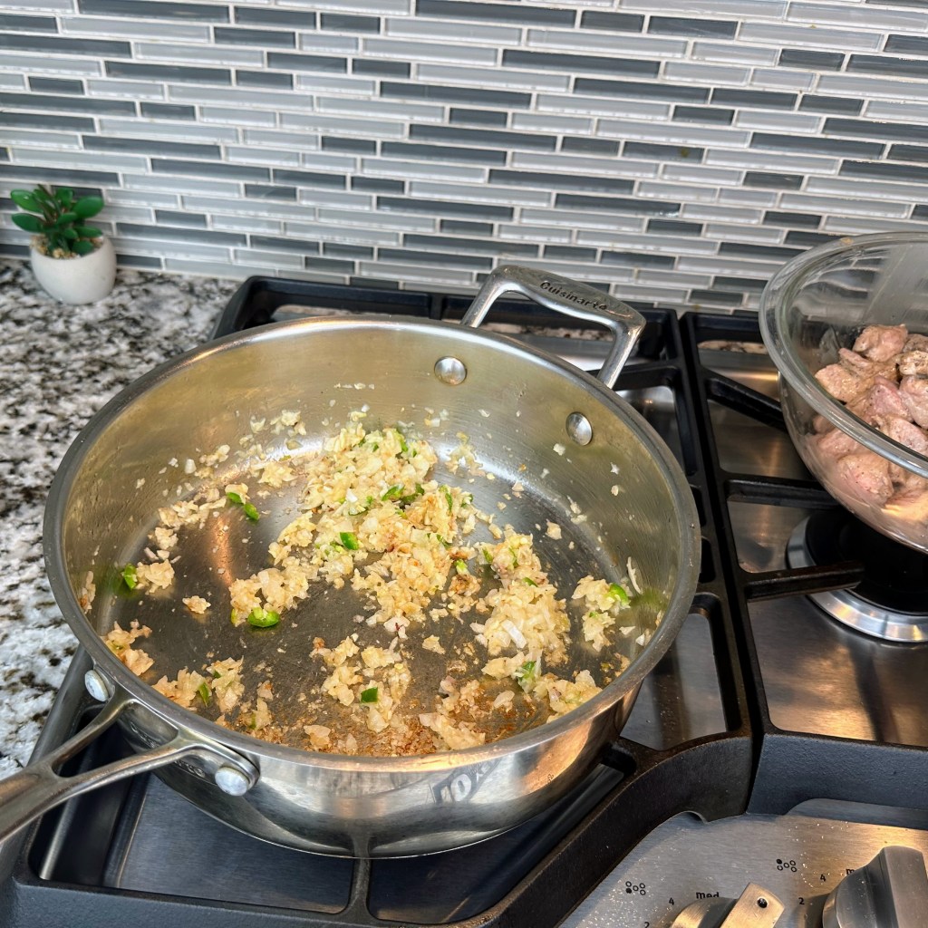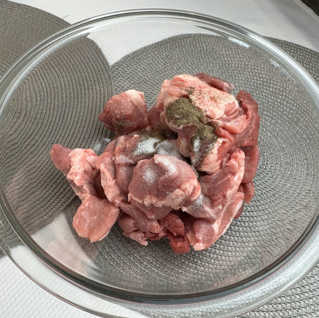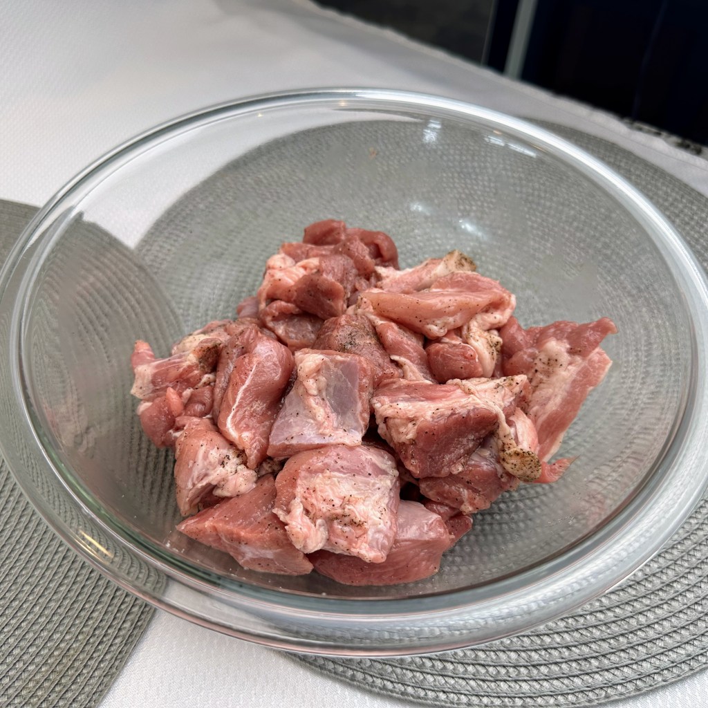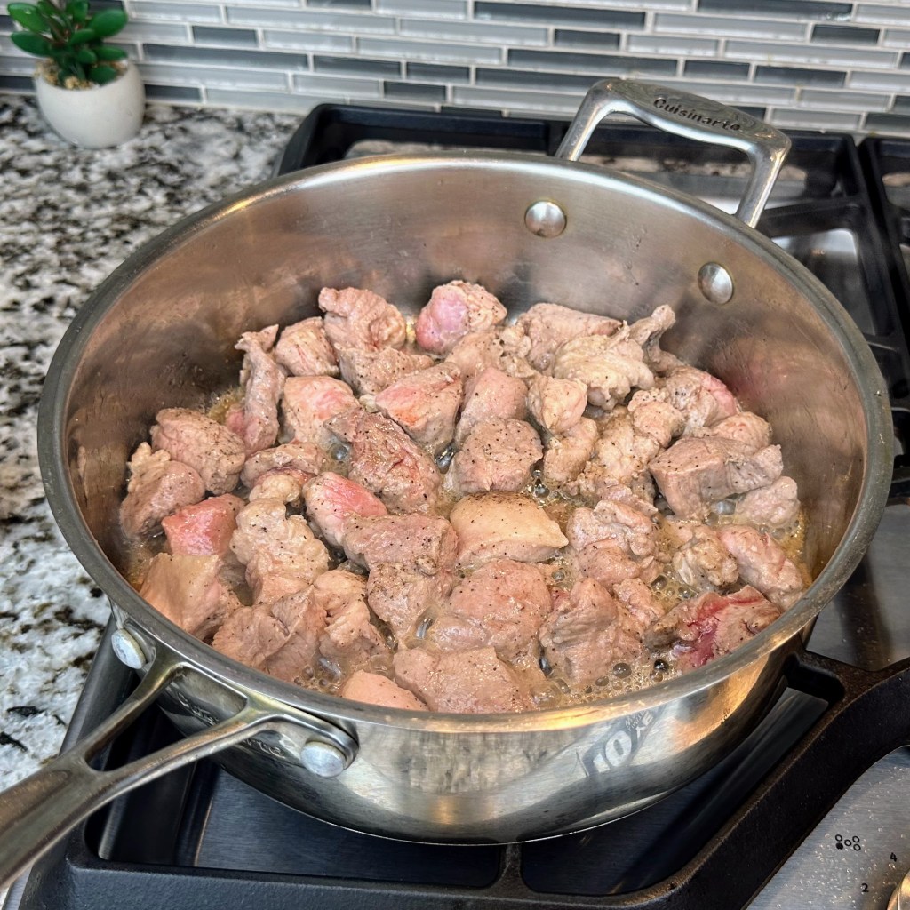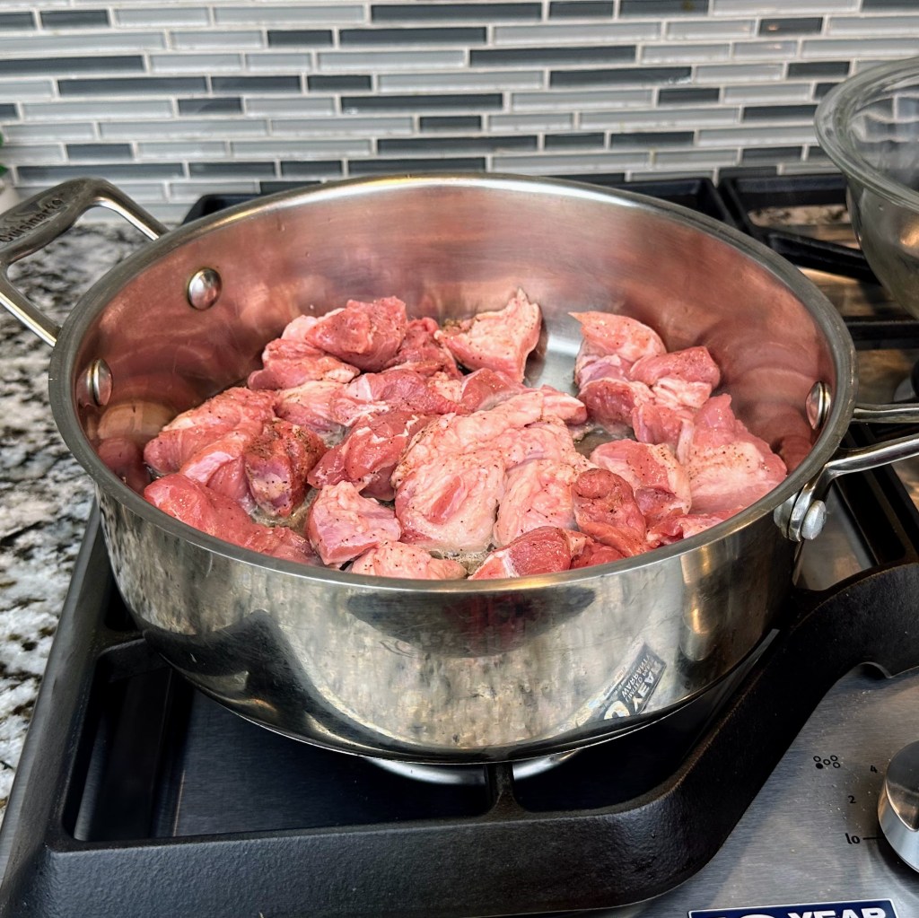- 2 1/2 lbs. pork shoulder or pork butt cut into (1 1/4 inch) pieces, about 5 cups