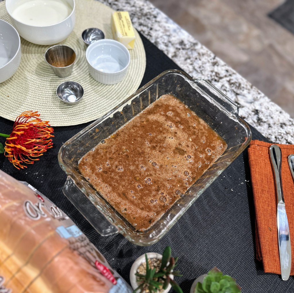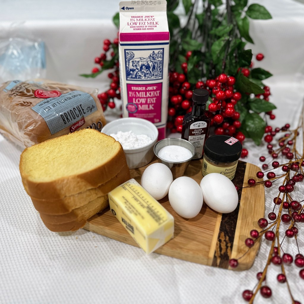 I am using brioche bread here, but you can use challah, white, wheat, raisin, or another bread of your liking.