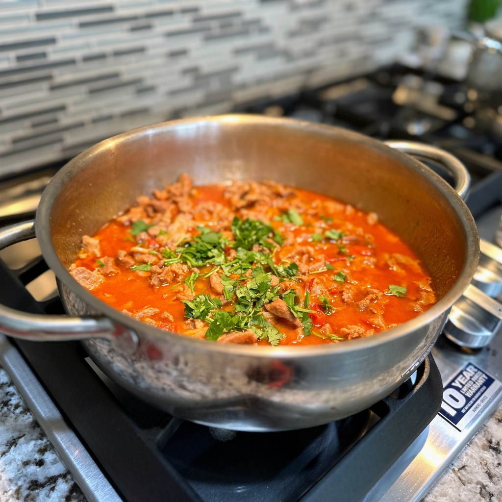 Turn down the heat, cover, and cook for 40 minutes or until pork are tender. Taste for seasoning. Stir in the basil or cilantro.