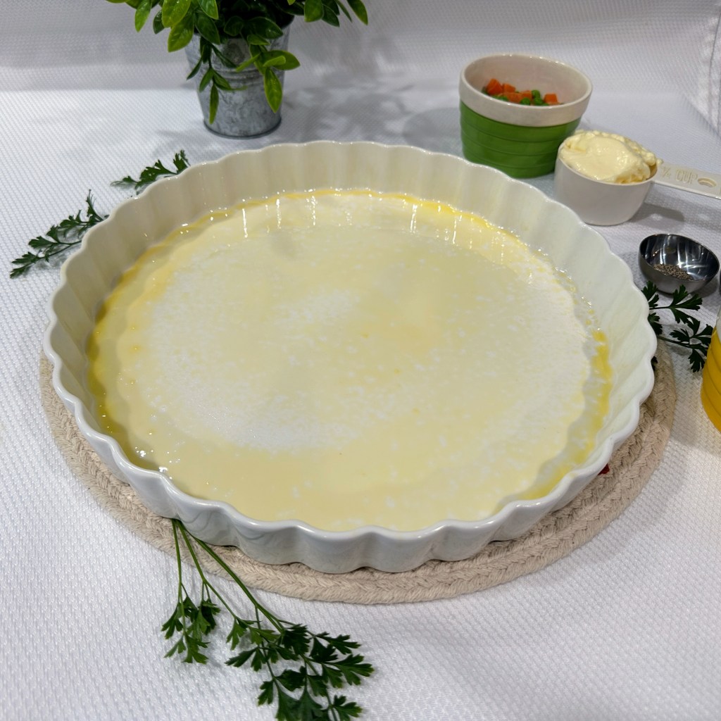 Preheat oven to 400 degrees. Grease an 10×10 inch round baking dish with non-stick cooking spray, then set aside.